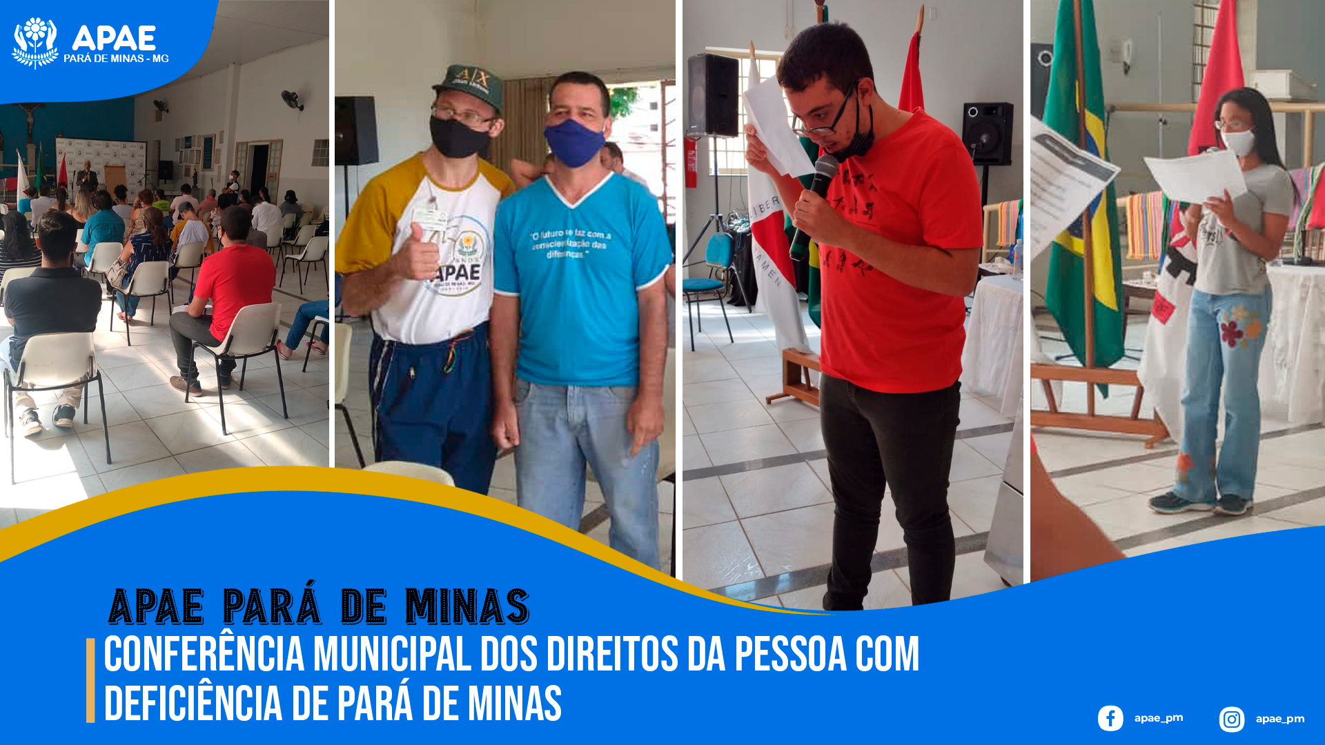 Na oportunidade, foram apresentados os eixos e propostas das pessoas com deficiência pelos Autodefensores da APAE de Pará de Minas e membros do Conselho Municipal de Defesa dos Direitos da Pessoa com Deficiência, são eles: Lecyandro Aparecido, Davi Geraldo de Moura Ferreira, Jessica Dayane de Almeida Paiva, Clayton Geraldo Alves Chagas.