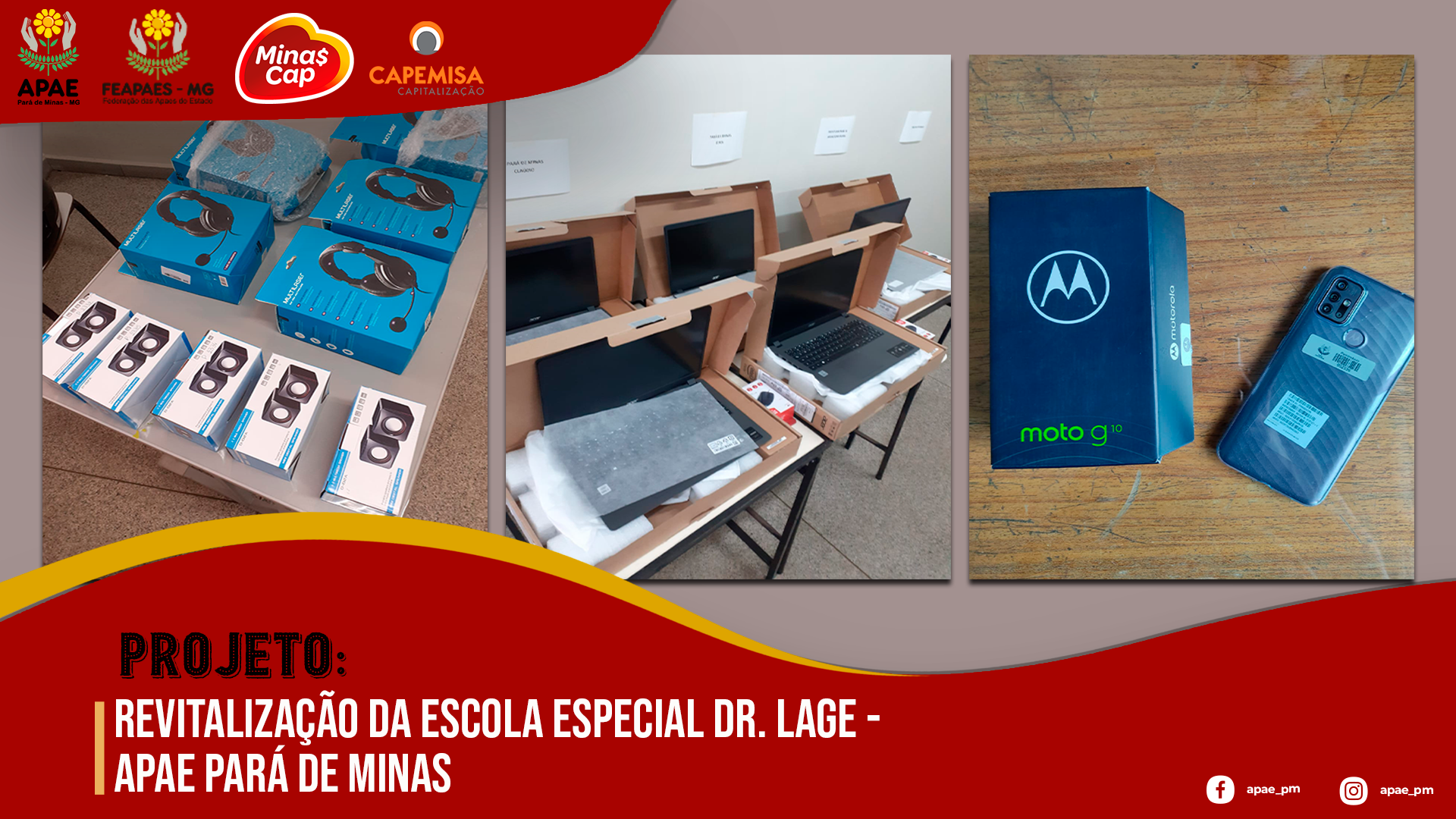 A APAE de Pará de Minas em parceria com a Federação das Apaes, teve seu projeto: “Revitalização da Escola de Educação Especial Dr. Lage – APAE de Pará de Minas”, aprovado pela Minas Cap.